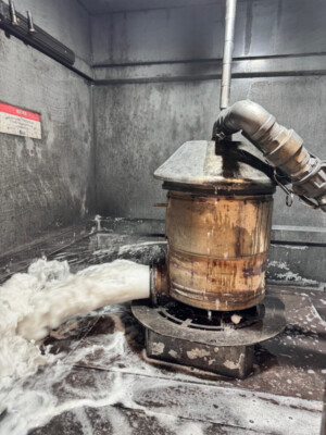 We use state of the art aqueous cleaning that allows us to return your DPF to OEM specifications. The first part of this process is blowing out the unit by hand with an air knife. Then our new Aqueous Flush Machine purges all of the contaminates from the substrate. The filter is then placed in a kiln overnight to dry the substrate, returning it to like-new condition.